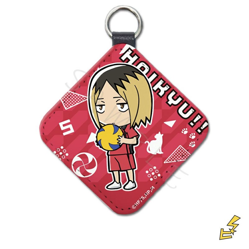 音駒高校 孤爪 研磨(こづめ けんま) のイラスト入り合皮タイプのキーホルダーです。