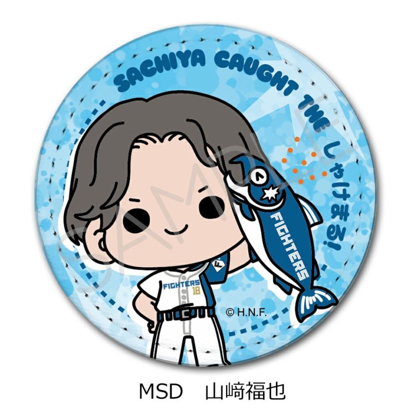 4. 『北海道日本ハムファイターズ』 レザーバッジ(丸形) (しゃけまるつかまえた!) mochocho-SD(山﨑福也)