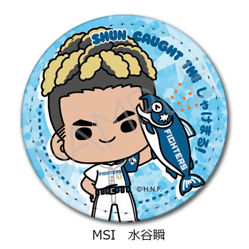 『北海道日本ハムファイターズ』 レザーバッジ(丸形) (しゃけまるつかまえた!) mochocho-SI(水谷瞬)