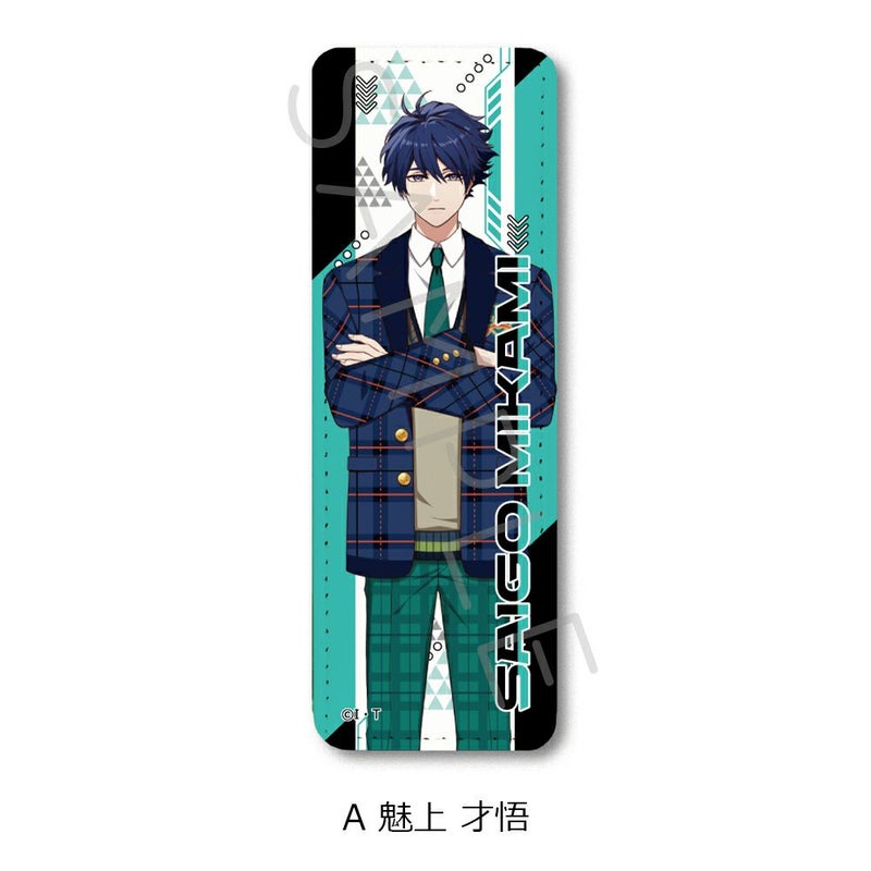 魅上 才悟 のイラスト入りPUレザーバッジの長方形ロングタイプです。