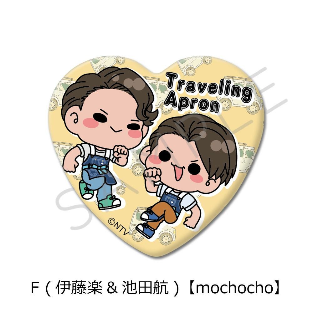 『ZIP!旅するエプロン』ハート型缶バッジ F (伊藤楽&池田航)【mochocho】