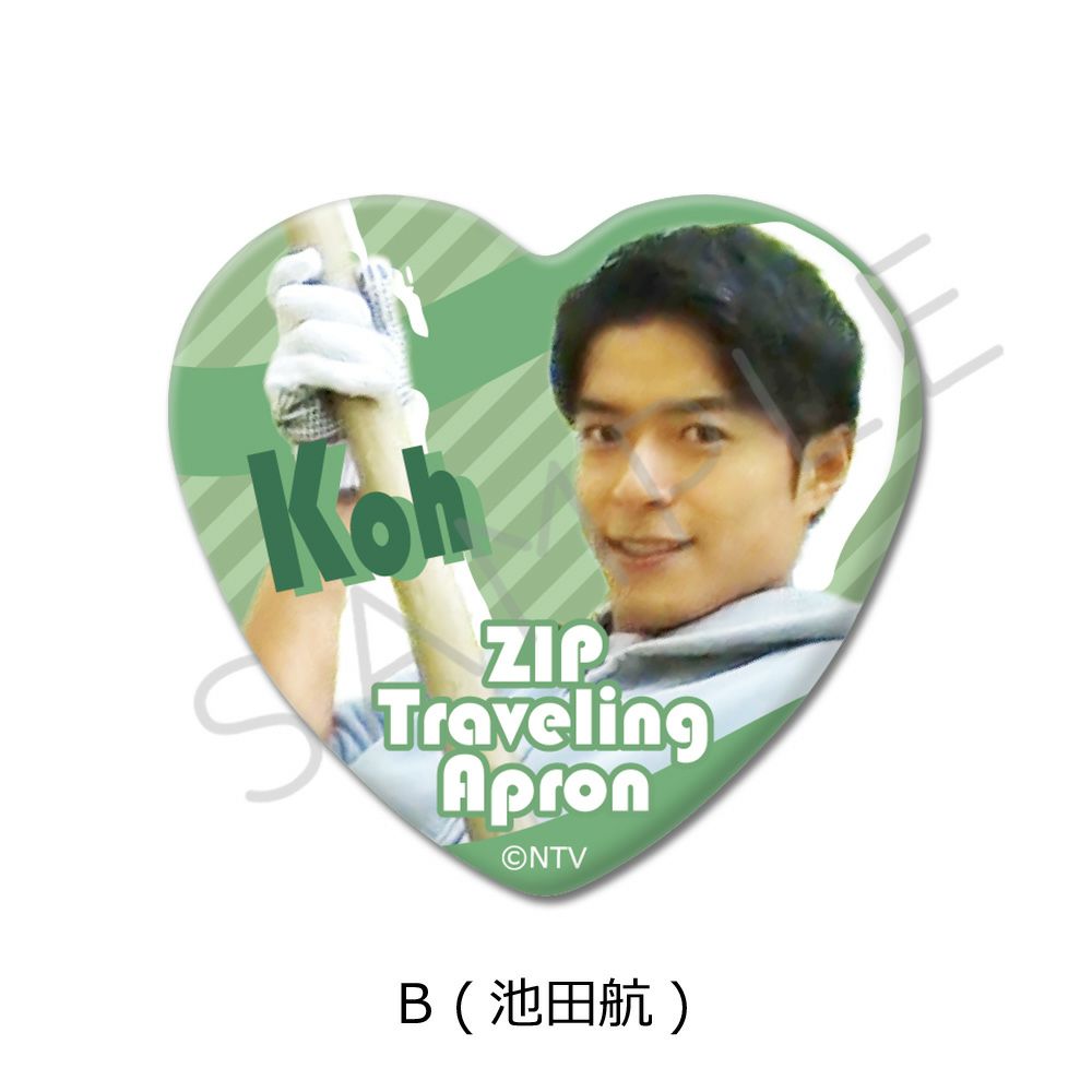 『ZIP!旅するエプロン』ハート型缶バッジ B (池田航)