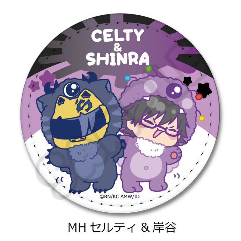 セルティ&岸谷 のイラスト入りPUレザーバッジです。