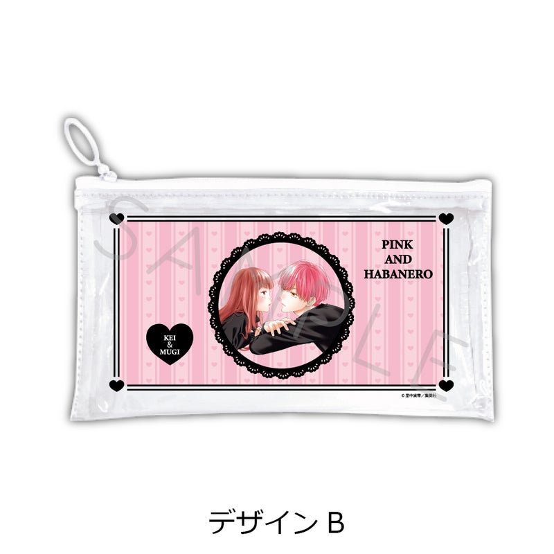 4. 『ピンクとハバネロ』 フラットクリアポーチ デザインB【予約】
